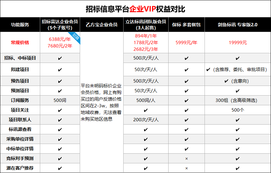 3价格剑鱼标讯免费提供全国全行业招标信息,无限制搜索查看,支持根据行业中标价地区信息类型等多种条件搜索,都是免费的另外剑鱼标讯提供招标信息智能订阅和推送功能,基于手机微信和剑鱼标讯APP端进行推送,也是免费的4实用性实用性的关键就是人性化满足客户需求,让客户花最少的钱获取。