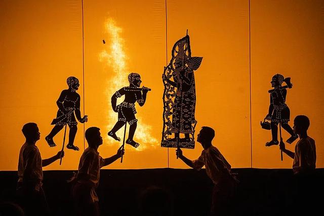 图:艺术家们在表演高棉皮影