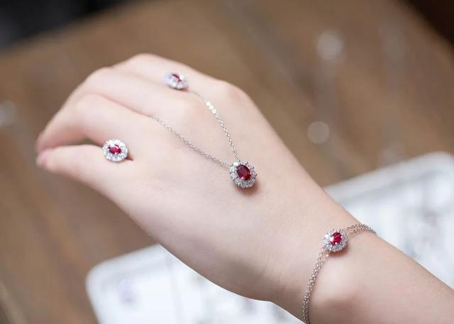 红宝石首饰有耳钉、手链、项链、戒指可选。