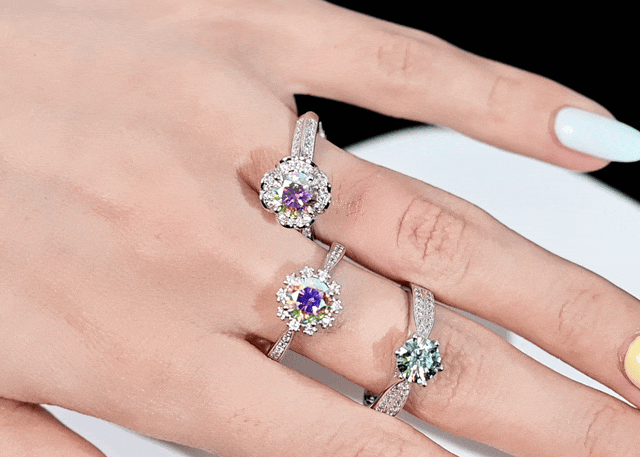 我们将 莫桑钻戒和钻石钻戒做个对比 ,大家来看一看实际的上手效果。
