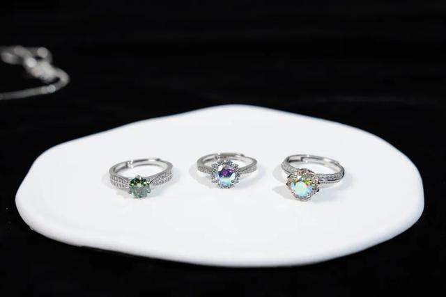除了白色的,还有新增的彩色莫桑钻系列。