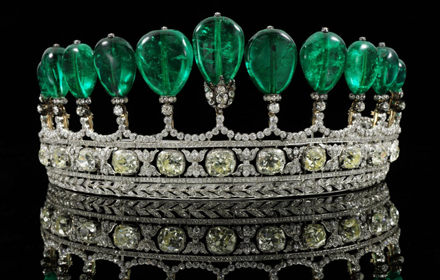 镶有11颗哥伦比亚梨形祖母绿宝石王冠,创下了祖母绿王冠的拍卖记录丨thejewelleryeditor.com