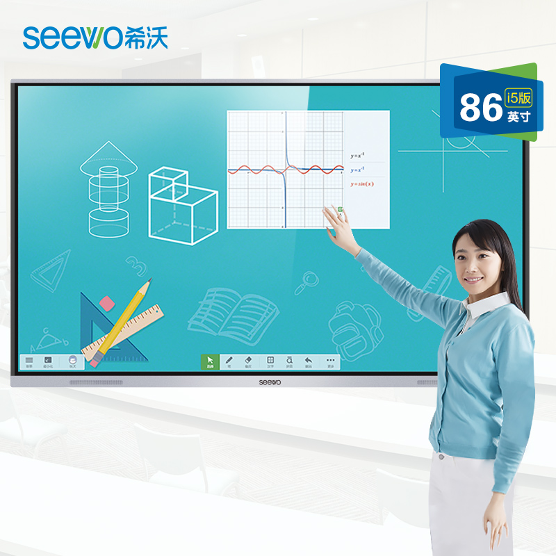 教师利用电子感应笔在白板上轻轻一点,课件视频等多媒体效果就能出现紧接着,交互式纳米智能黑板液晶屏智能交互教学一。